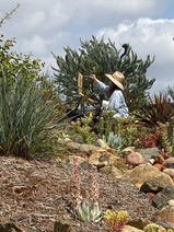 The San Diego Horticultural Society loves to feature plein air artists in the gardens on our spring tour each year. It is so inspiring to experience a garden through the eyes of an artist as they interpret the garden in a painting which captures that moment in time. Each year, I love to match up artists with the gardens, paying close attention to the personal style of the garden, designer and garden owner, as well as the artistic style and personality of the artist.