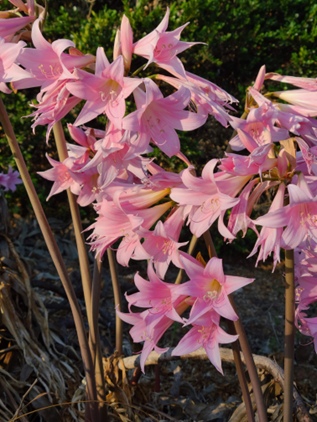 The Ipheion uniflorum surrounding the T. bakeri in the photo can be very invasive. I have given up on keeping it out of my gravel paths and just walk on it. Of course, we heard about the Amaryllis belladonna at our last meeting. Mine are blooming right now.
