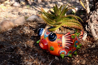 This planter was purchased, while at a wine and art fundraiser in Lake Arrowhead. Don't you love his hair? He gets hairs cuts periodically, as it grows.